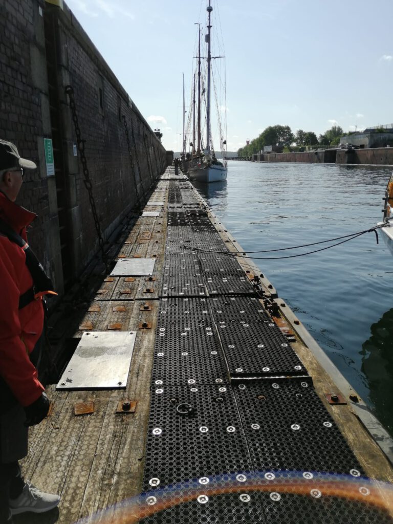 Schleusen mit ein paar anderen Seglern vor uns hin, da vor uns ein einzelner Kreuzfahrer