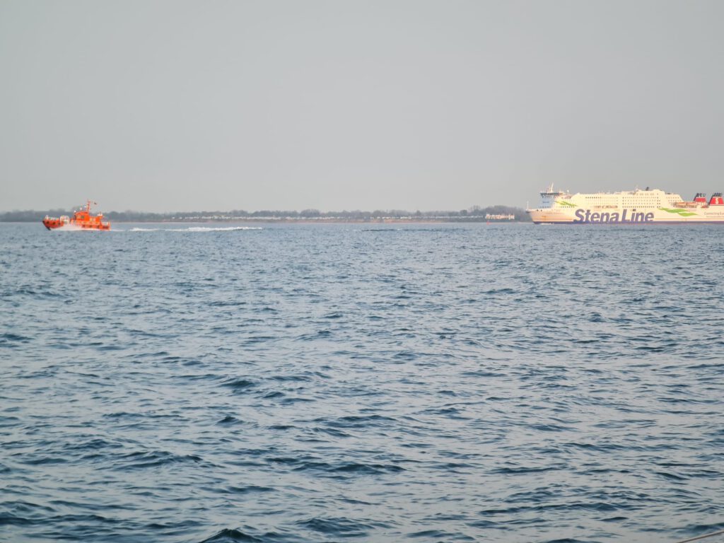 Immer wieder in Sicht, mit großen Fähren und Frachtschiffen, sogar zwei Schweinswale kreuzten unseren Weg.