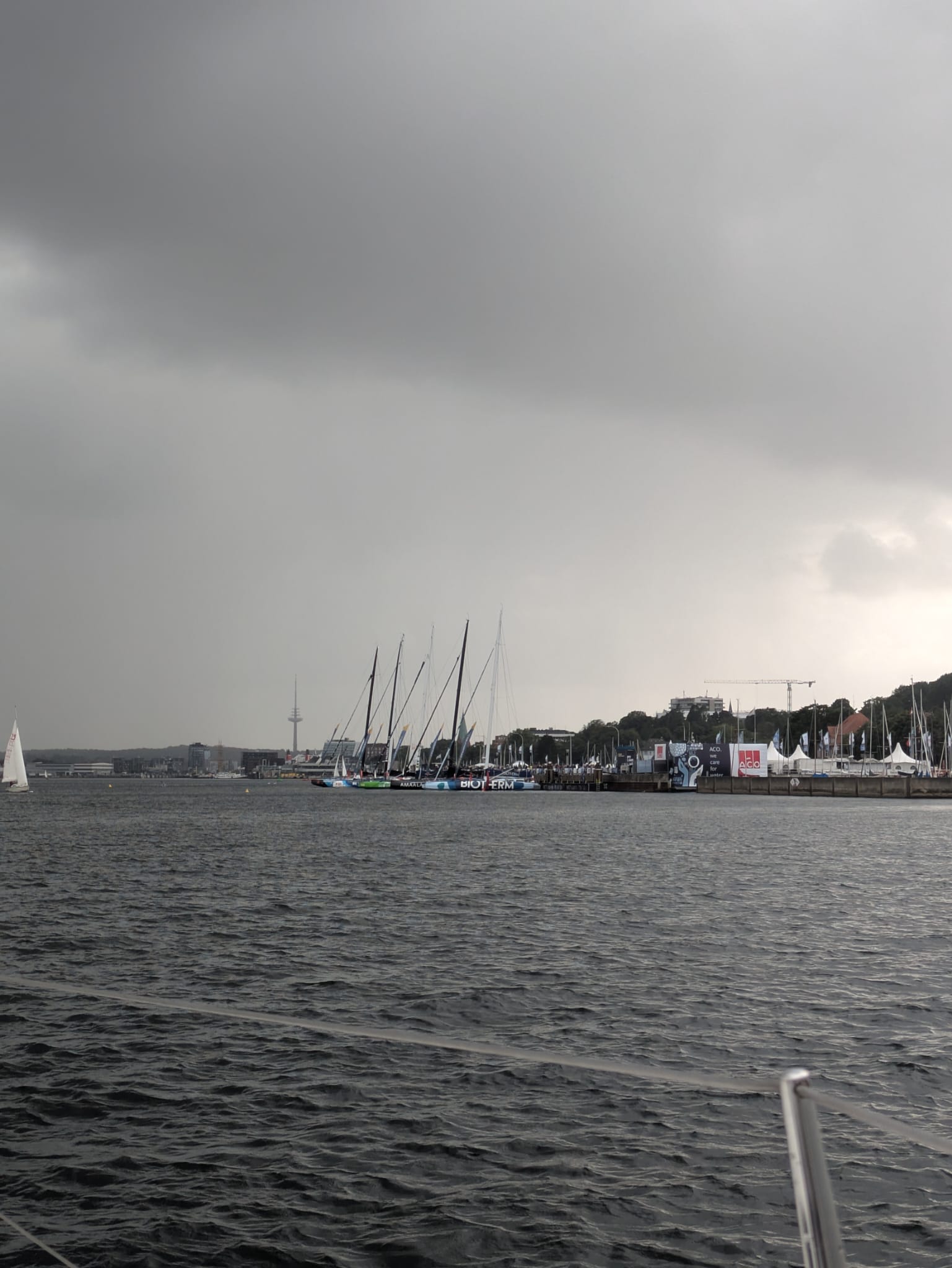Am Wochenende 9.8.–10.8.25 waren wir mit der Kick rund um das Ocean Race unterwegs. Organisiert von Skipper Karl ging’s Sa. Morgen gegen 8 Uhr los Richtung Innenförde mit einer Crew von 9 Personen, inklusive aller beigesteuerten Leckereien und Getränke. Zu sehen waren die eindrucksvollen IMOCAs, die ihre Regattafahrten absolvierten; mit viel Spaß und guter Laune waren alle dabei. Gegen Nachmittag gab es noch ein Anlegemanöver, um in Kiel einen Teil der Crew an Land zu setzen. Weiter ging es mit der Dreier-Crew, um das letzte Race des Tages anzusehen. Gegen 19 Uhr waren wir müde, aber voll der tollen Eindrücke des Tages in Laboe im Hafen.